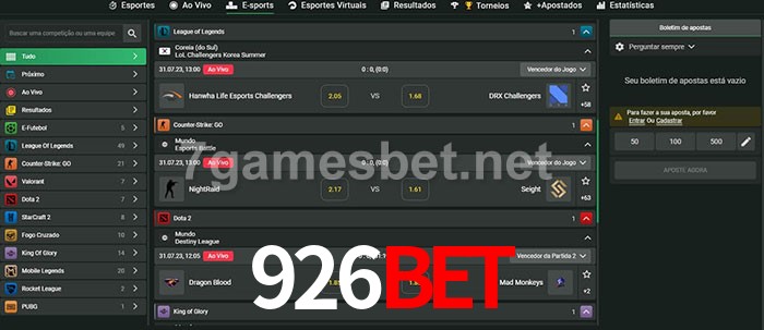 O 926bet oferece uma grande seleção de opções de apostas em e-sports com probabilidades competitivas